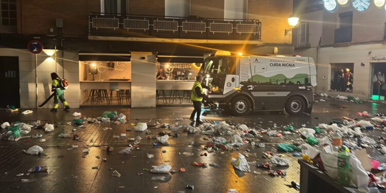 El Ayuntamiento de Alcalá de Henares puso en marcha un operativo de limpieza especial para las celebraciones de Preúvas y Tardevieja, logrando retirar cerca de seis toneladas de residuos del centro de la ciudad en apenas unas horas. Este esfuerzo intensivo devolvió la normalidad al Casco Histórico la mañana del 1 de enero, tras una de las noches con mayor afluencia de público del año.