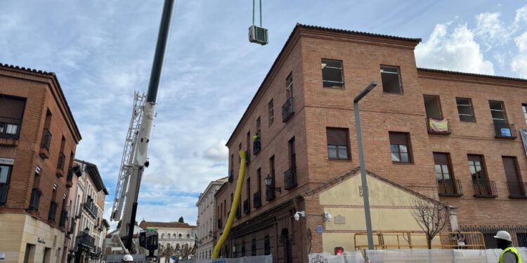 Los trabajos de rehabilitación del Palacio Consistencial se han convertido en un espectáculo inusual para el casco histórico: una grúa de 48 toneladas, con una pluma telescópica de hasta 50 metros, opera desde la calle Cerrajeros para desmontar los viejos equipos de climatización del edificio. La escena, casi literal, de “empezar la casa por el tejado” simboliza la magnitud del proyecto, que forma parte de la Línea 2 del Programa de Impulso a la Rehabilitación de Edificios Públicos (PIREP) para Entidades Locales, incluido en el Plan de Recuperación, Transformación y Resiliencia.
