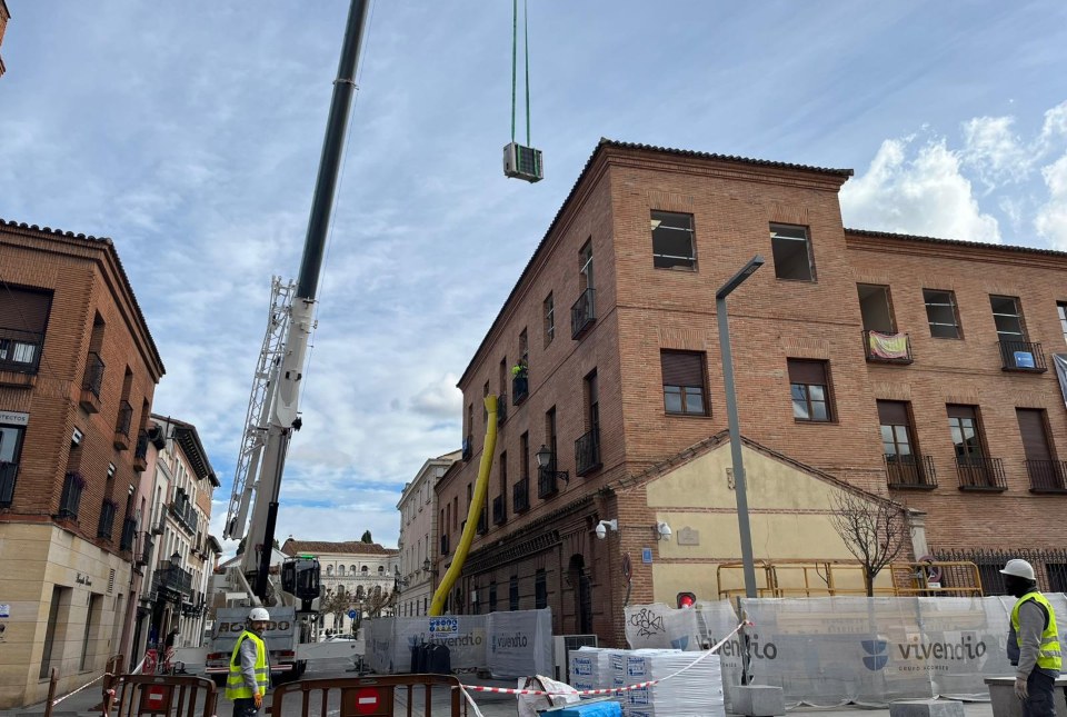 Los trabajos de rehabilitación del Palacio Consistencial se han convertido en un espectáculo inusual para el casco histórico: una grúa de 48 toneladas, con una pluma telescópica de hasta 50 metros, opera desde la calle Cerrajeros para desmontar los viejos equipos de climatización del edificio. La escena, casi literal, de “empezar la casa por el tejado” simboliza la magnitud del proyecto, que forma parte de la Línea 2 del Programa de Impulso a la Rehabilitación de Edificios Públicos (PIREP) para Entidades Locales, incluido en el Plan de Recuperación, Transformación y Resiliencia.